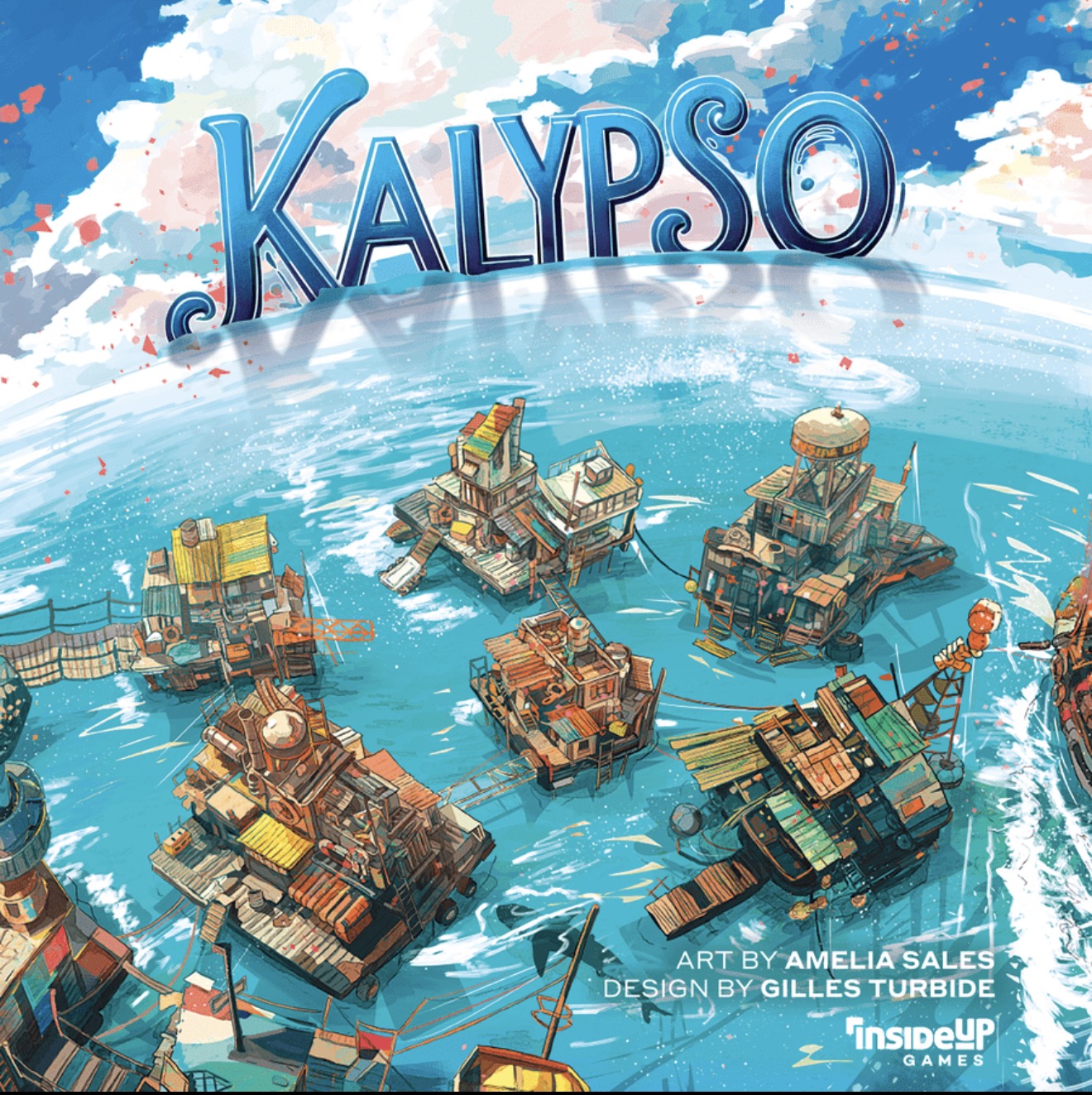 Kalypso es un juego de mesa para 1 a 4 jugadores donde tienen que ir construyendo campamentos flotantes en un mundo que se encuentra sumergido en el mar.